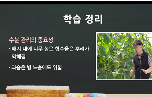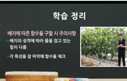 작물을 기르는데 수분 관리는 필수적이다. 스마트팜은 기본적으로 흙을 쓰지 않고 배지를 사용한다.