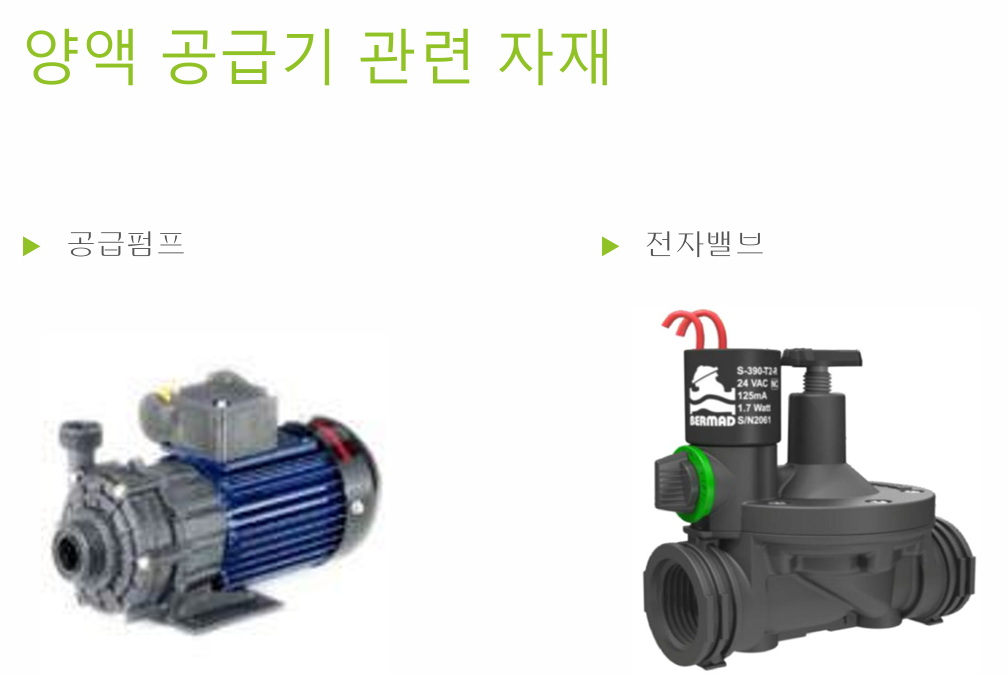 양액기 공급자재 중 양액 공급밸브가 가장 중요하다. 국내 양액기 업체들은 전부 솔레노이드사 제품을 쓴다.